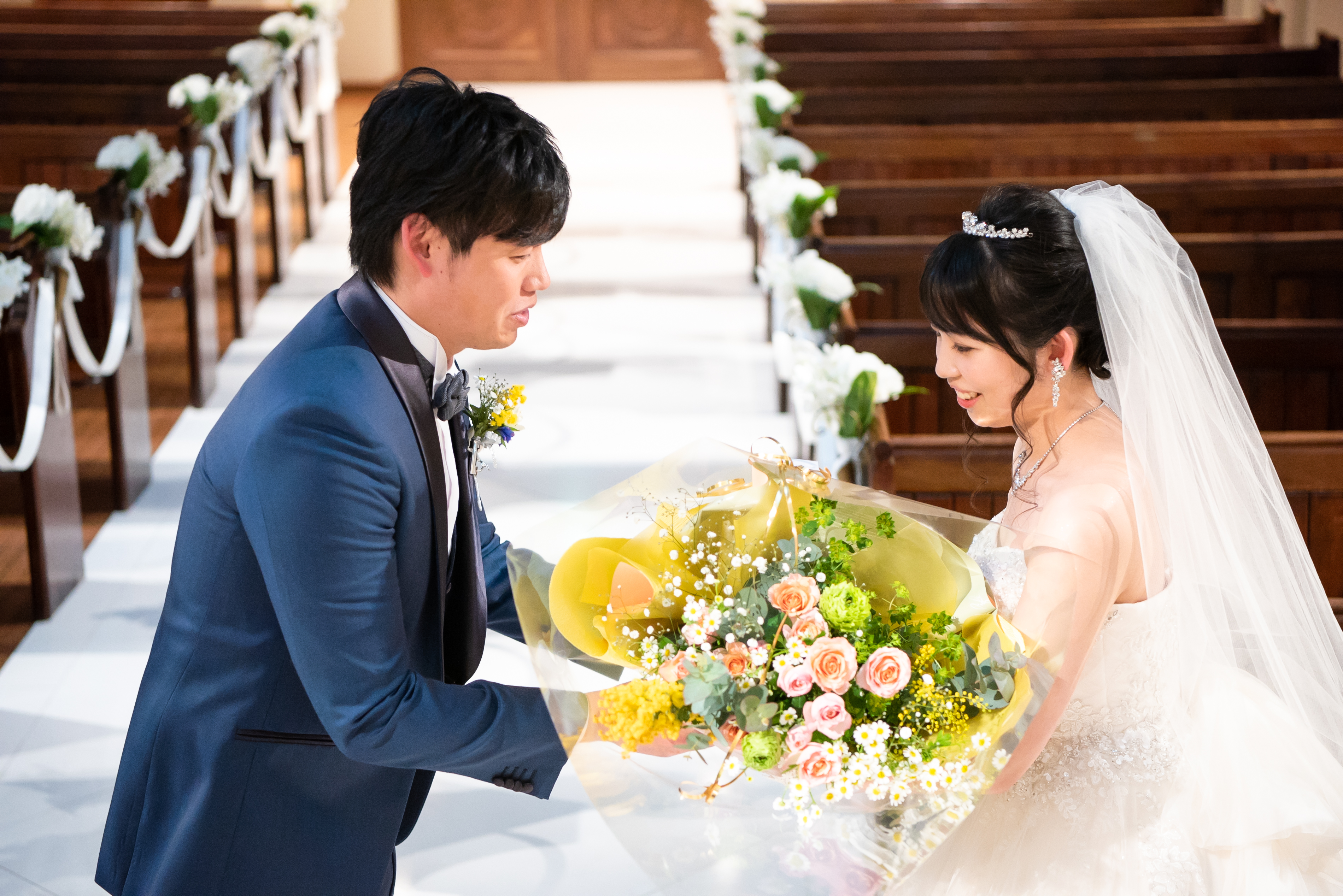 チャペルに入る瞬間までお互いの衣裳は内緒…
